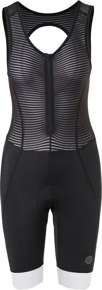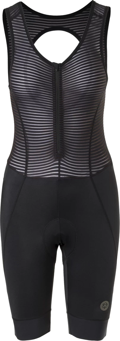 De Agu Essential Prime II Bibshort Dames is een bewezen fietsbroek van Agu, welke zijn sporen inmiddels al verdiend heeft. Deze broek dankt zijn populariteit aan de allround prestaties en de schappelijke prijs, zonder in te leveren op comfort. De broek is gemaakt van Power Lycra stof, welke goed aansluit om jouw lichaam. Je hebt dankzij de flexibele stof optimale bewegingsvrijheid en minimale wrijving. De brede lasergesneden beenbanden hebben een siliconen grip en verdelen de druk evenredig over jouw bovenbenen, wat het comfort verhoogt. De elastische heupband zorgt ervoor dat de broek niet te strak aansluit. De platte naden dragen bij aan het draagcomfort, en deze naden voorkomen huidirritaties.
