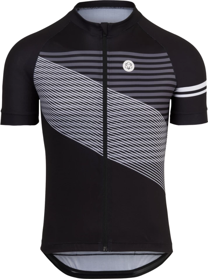 Met de Agu Striped Jersey kom je altijd in style aan bij je wielervrienden. Het shirt is gemaakt van ademende en sneldrogende stof wat het shirt geschikt maakt voor de warmere dagen in het voorjaar of de zomer. Tevens is het shirt voorzien van een rits voor als het écht heel warm is op de fiets. De aansluitende ‘slim fit’ pasvorm zorgt ervoor dat het shirt comfortabel om het lichaam zit wat prettig is voor op de fiets. Verder is het shirt voorzien van een siliconen griopper zodat hij netjes op zijn plek blijft zitten. Je accessoires of voeding kun je kwijt in één van de drie achterzakken van het shirt. Om het af te maken is het shirt zowel bij mountainbikers als racefietsers geschikt.