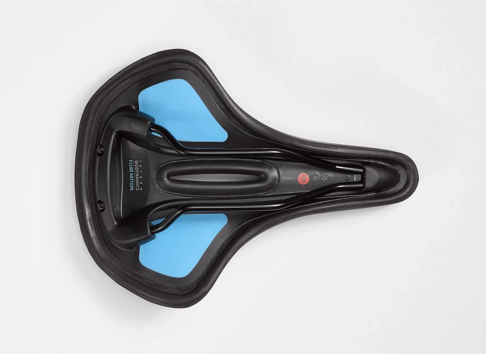 De gepatenteerde vloeistoftechnologie van Bontrager voegt comfort toe door mee te bewegen tijdens het trappen en is beter dan gel bij het verminderen van drukpunten. Volgens Bontrager, het materiaal laat een gemiddelde daling van 20% piekbelasting zien in vergelijking met gel. Dit zadel is ontworpen voor de rechtop zitpositie van recreatieve fietsers en heeft een uitsparing over de volledige lengte – dus minder druk op de gevoelige delen!