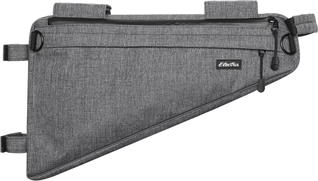 De Electra Triangle frametas van Bontrager is ideaal voor het opbergen van spullen tijdens lange fietsritten. De tas is geschikt voor de fietsen met Loft, Loft Go!, Townie en Townie go! Step-over frames. Hij wordt afgesloten m.b.v. een waterdichte rits waarbij je spullen ook nog eens droog blijven tijdens slecht weer. De tas is te bevestigen m.b.v. snelspanners die om het frame geslagen worden. Ook krijg je naast de tas zelf een schouderriem erbij, deze bevestig je aan de tas en dan kan je daarna te voet verder gaan zonder dat de tas vervelend is om vast te houden. Kortom, de ideale tas voor tijdens en na het fietsen!