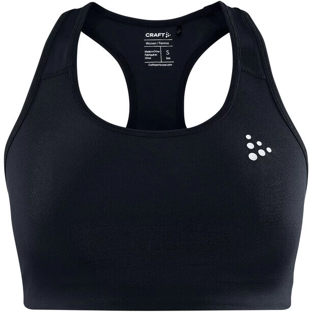 De Craft Training Bra Classic heeft een strakke maar comfortabele pasvorm met badstof elastiek onder de buste. De sportbh is zacht en zit prettig onder je fietskleding.