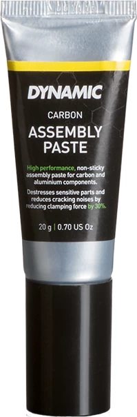 De Dynamic Carbon Assembly Paste is een hoogwaardige montagepasta die gebruikt kan worden voor zowel aluminium als carbon onderdelen. Met de Dynamic Carbon Assembly Paste weet je zeker dat je onderdelen niet gaan slippen of glijden. De montagepasta verlaagt het aandraaimoment tot 30%, zodat scheurtjes in het carbon voorkomen kunnen worden. Dankzij de montage pasta die micropearls bevat, worden onderdelen goed vastgezet zonder dat zij daarvoor een hogere spanning nodig hebben. Na het gebruik van de Dynamic Carbon Assembly Paste zul je merken dat je geen krakende of piepende onderdelen meer hebt. Nog een bijkomend voordeel: de montagepasta beschermt tegen corrosie en vocht. De pasta is geschikt voor onder andere handvatten, zadelpennen, stuurpennen en bottom bracket cups. Al deze bovenstaande eigenschappen zorgen ervoor dat de pasta een favoriet is van meerdere profesionele teams.