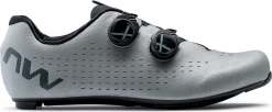 De Revolution 3 Raceschoen van Northwave is een lichtgewicht raceschoen met een extra stijve carbon zool voor alle wielrenners die graag het beste van het beste hebben. Dankzij deze stijve zool wordt de kracht die je op de pedalen zet goed overgebracht, zodat je niet voor niets trapt. De zool heeft een goed ademend vermogen dankzij de ventilatieopeningen. De schoen is voorzien van twee SLW3-draaisluitingen, waarmee je de pasvorm van je schoen perfect kunt aanpassen aan je voet. Op die manier gaat er ook geen kracht verloren door het schuiven van je voet in de schoen. Dankzij de Anatomical Arch Support sluit de schoen goed aan op de wreef. Hierdoor past de schoen op bijna iedere voet en biedt de schoen veel comfort. Met de Northwave Revolution 3 Raceschoenen ga je gerust een hele dag fietsen!