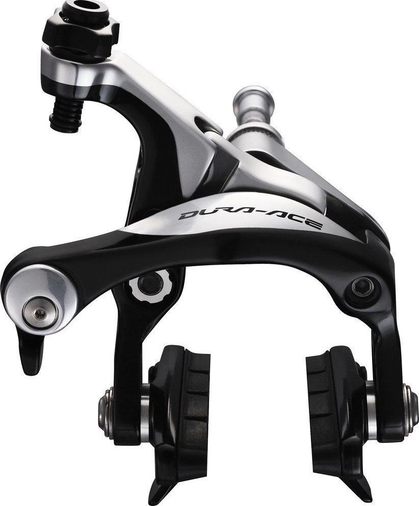 Voor of achter remhoef uit de nieuwste Shimano Dura-Ace groep. De remmen zijn door de nieuwste update weer lichter, stijver en krachtiger geworden. Het verschil met de ‘oude’ Dura Ace 7900 remmen is duidelijk merkbaar. Doordat de remhoeven stijver zijn hoeft er minder kracht gezet te worden om flink af te remmen en is de remkracht beter de doseren.