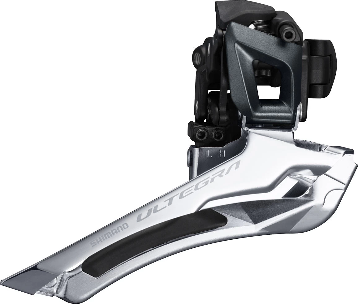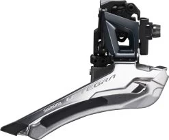 Voorderailleur uit de Shimano R8000 groep, geschikt voor Shimano 2×11 schakelsystemen voor de racefiets