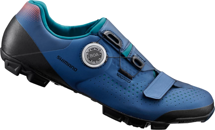 Met de Shimano XC501 Mountainbikeschoenen haal je het maximale uit jezelf op elk XC parcours. De schoen heeft een bredere Dynalast leest, waardoor de schoen nauw om de voet heen sluit en toch voldoende comfort biedt om de hele dag lang de trails te trotseren. De dubbele BOA draaisluiting zorgt ervoor dat je de schoen perfect naar eigen smaak kunt afstellen. De hak van deze schoen is verstevigd, wat zorgt voor extra stabiliteit.