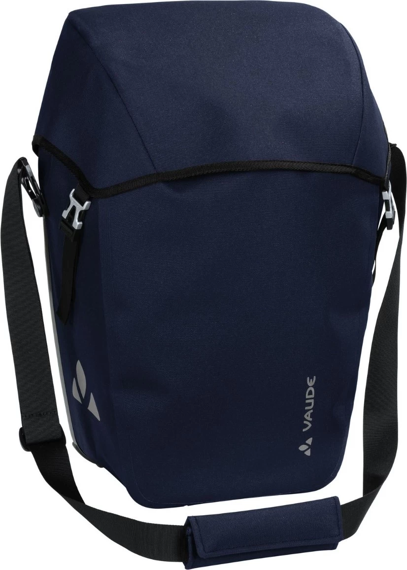 De Vaude Comyou Pro Single Fietstas is een zeer degelijke en duurzame fietstas. De tas is gemaakt van robuust materiaal in textiel look en is volledig PVC-vrij dus kan ook gerecycled worden. Het materiaal is tevens waterdicht wat de tas ook geschikt maakt voor regenachtig weer. Met de 26 liter inhoud in het overzichtelijke hoofdvak is de tas uiterst geschikt om te gebruiken voor zowel woon-werkverkeer als langere fietstochten. Je bevestigt de tas aan de zeikant van je bagagedrager, waar hij stabiel blijft zitten en makkelijk te (de)monteren is.